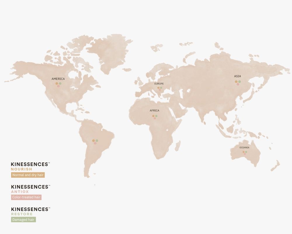 KINESSENCES™ offers region-specific solutions for normal, colour-treated, and damaged hair, ensuring the best care wherever you are