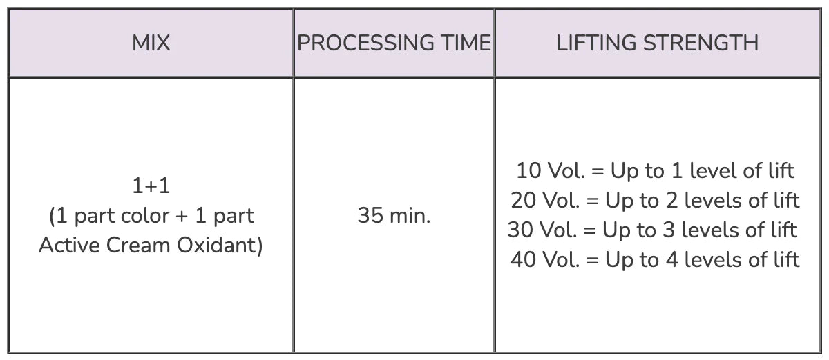 Mix the new KINCREM Color with Active Cream Oxidant, especially developed for improved results.