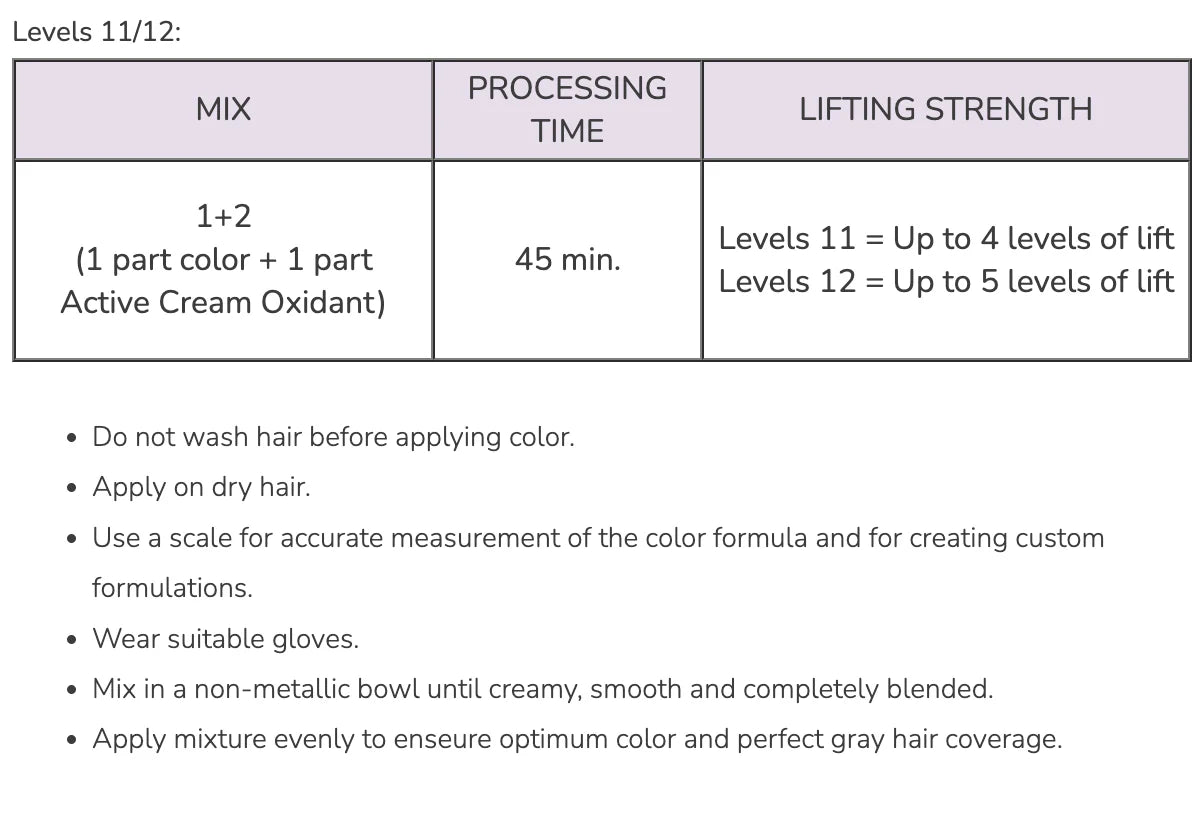 Virgin hair application: Apply to lengths, then roots after 15 mins. Process for 35 mins.
